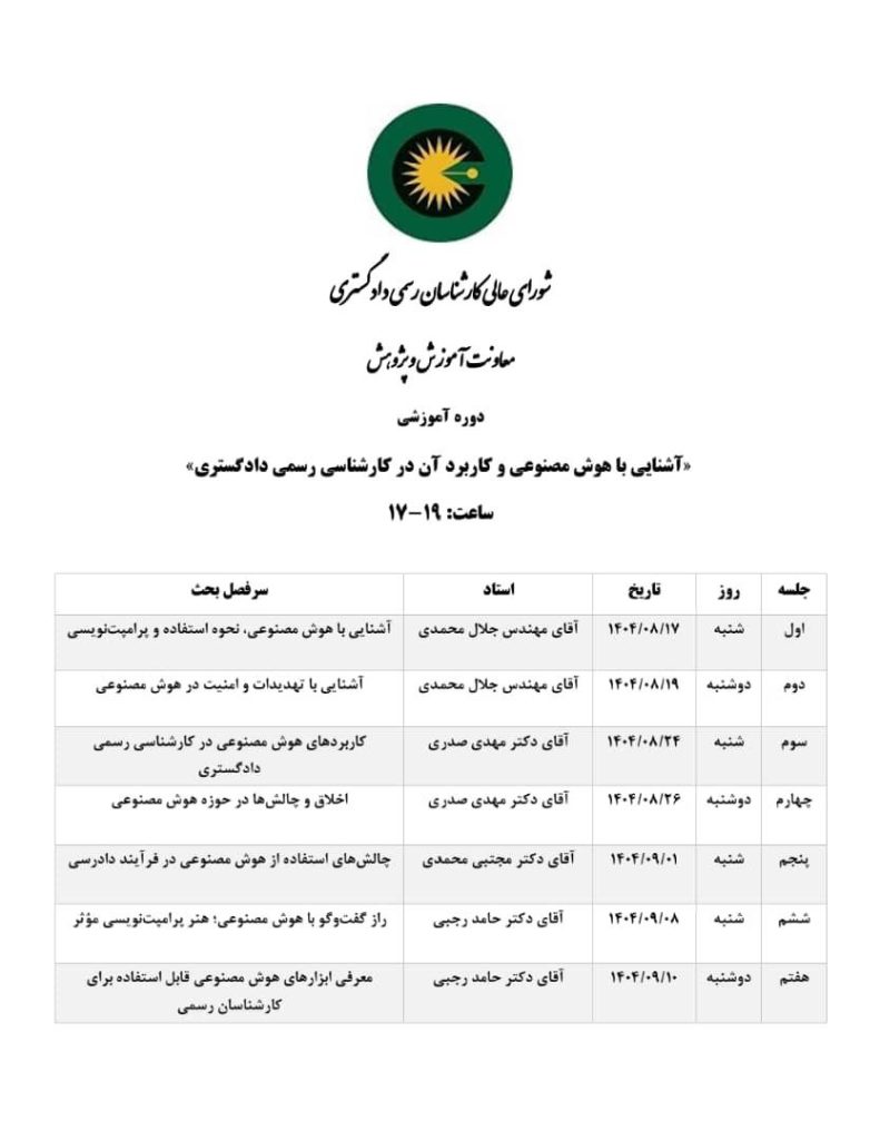 اولین جلسه روز 17 آبان ماه ساعت 17 تا 19 برگزار خواهد شد