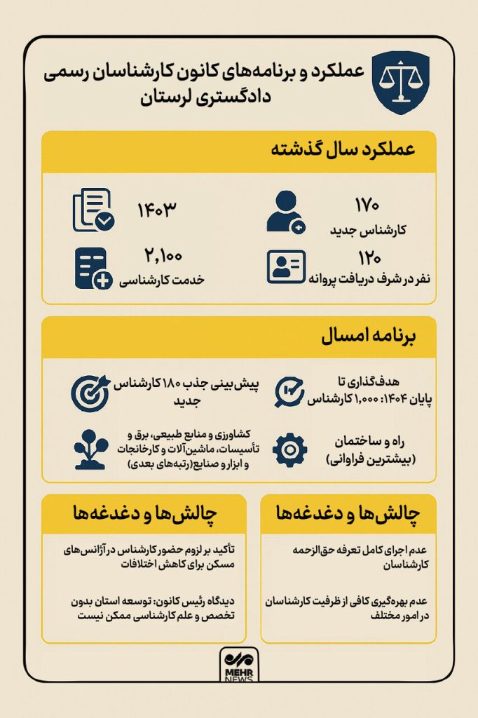 اینفوگرافیک عملکرد و برنامههای کانون کارشناسان رسمی دادگستری استان لرستان در خبرگزاری مهر