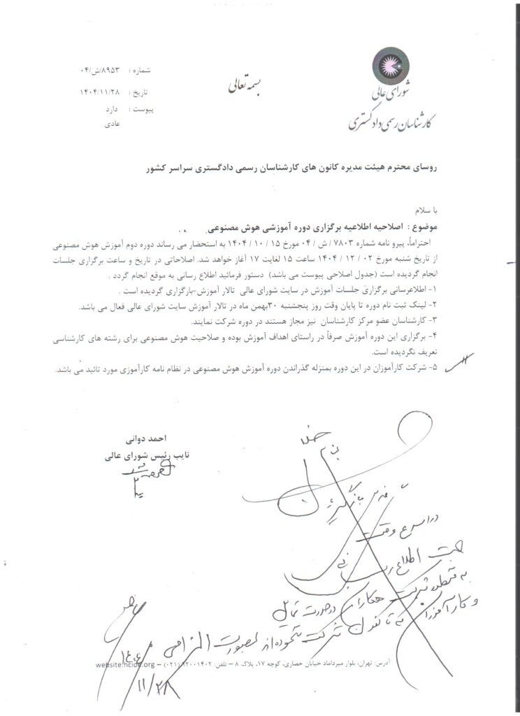 اصلاحیه زمان برگزاری دوره دوم هوش مصنوعی