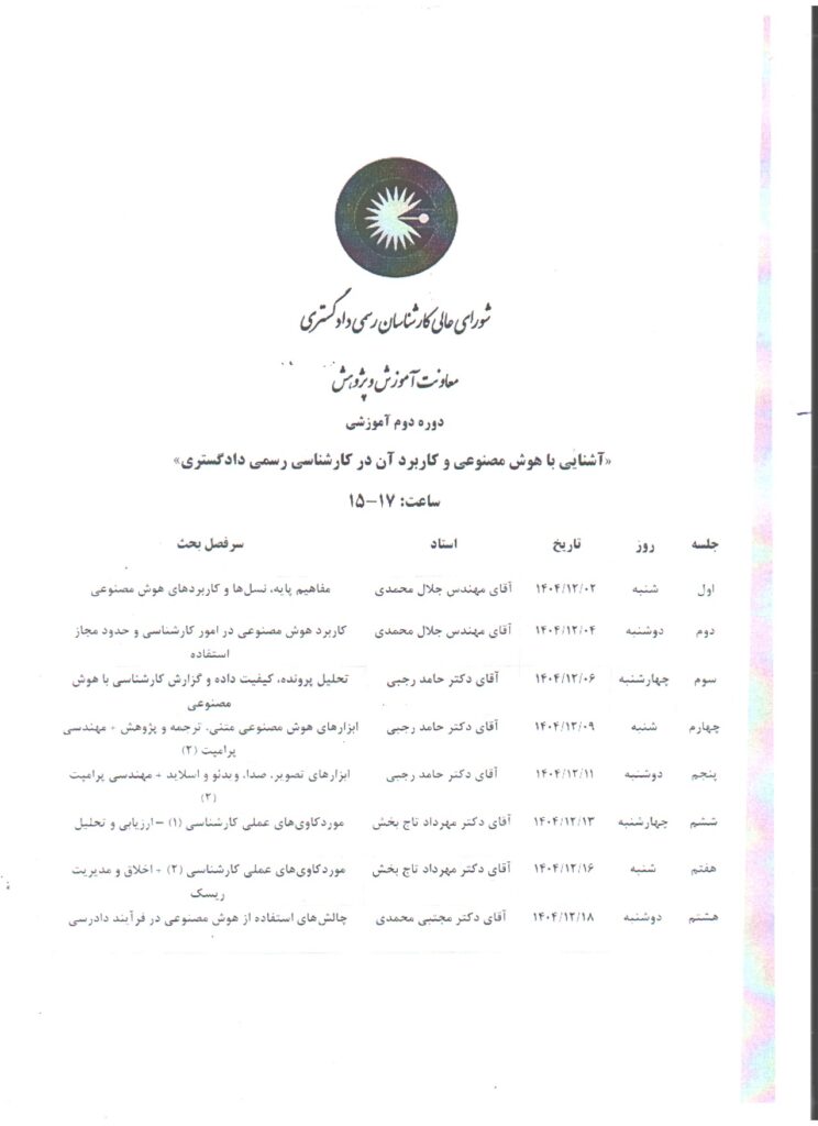 دوره دوم «آشنایی با هوش مصنوعی و کاربرد آن در کارشناسی رسمی دادگستری»