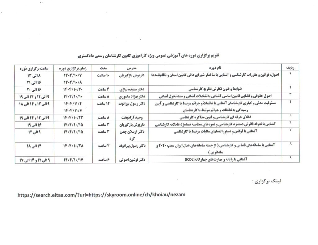 تقویم برگزاری دورههای آموزشی عمومی ویژه کارآموزان کانون کارشناسان رسمی دادگستری