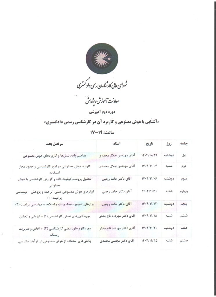 دوره دوم «آشنایی با هوش مصنوعی و کاربرد آن در کارشناسی رسمی دادگستری»